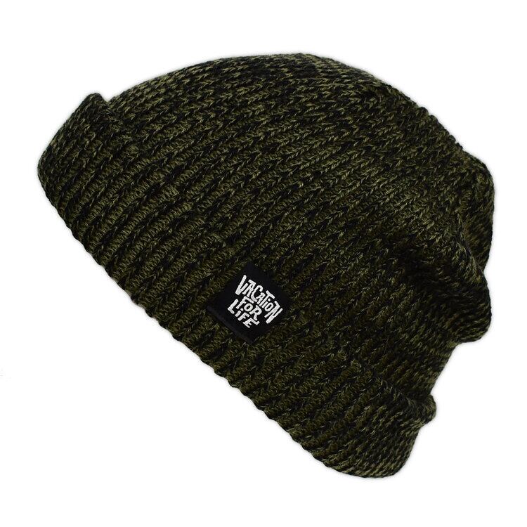 ※配送日時指定不可 Vacation for Life Heather Beanie サイズ : フリー Colors(s) Olive (ARMY) Black Navy Maroon 100% Acrylic Double layered 10" length unfolded Vacation For Lifeロゴ入りニット帽です。 ありがちなニット帽ですが、V4Lロゴがさり気なく取り付けてあり、 ファンには有難い商品です。